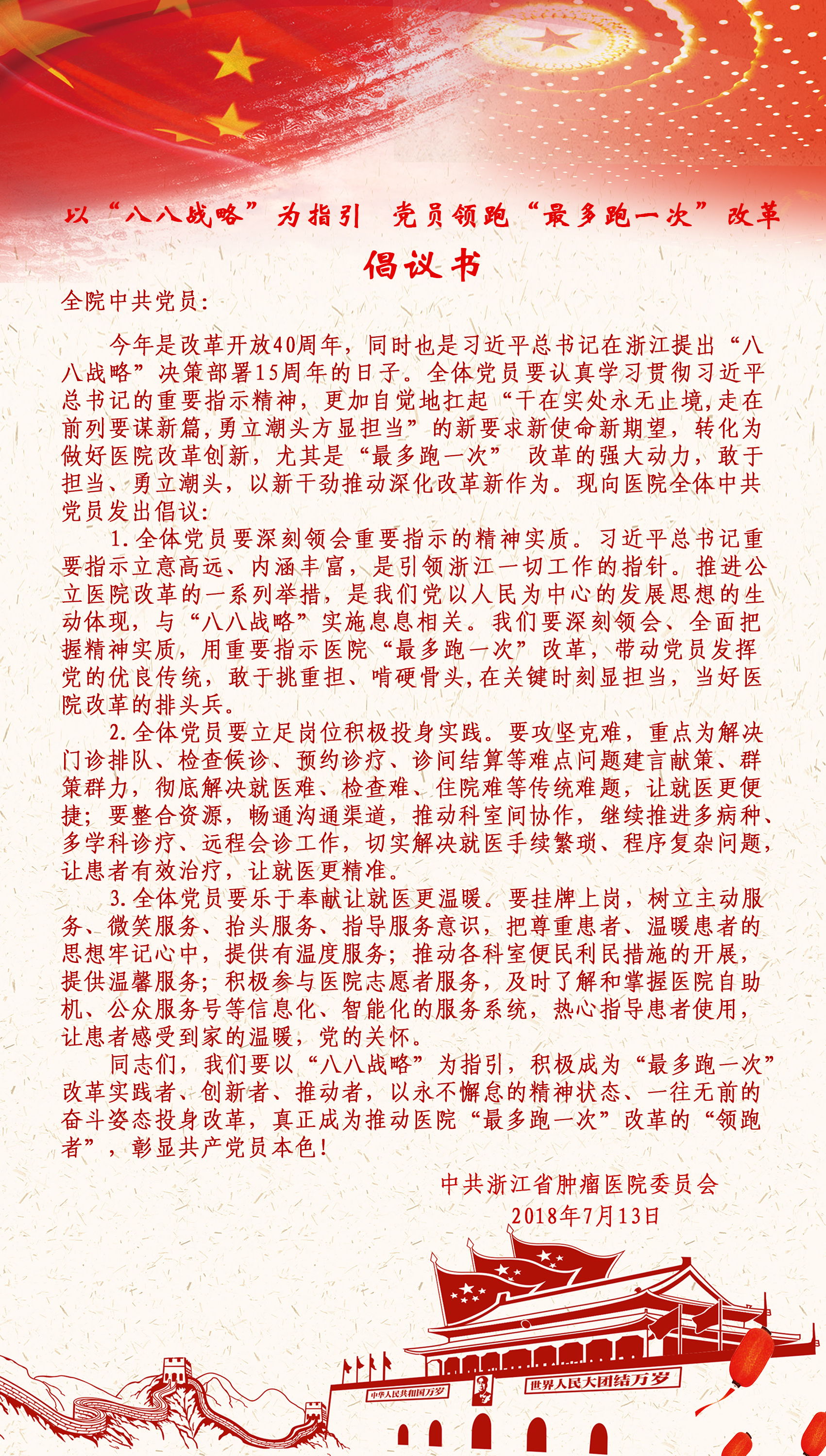 以“八八战略”为指引 党员领跑“最多跑一次”改革的倡议书