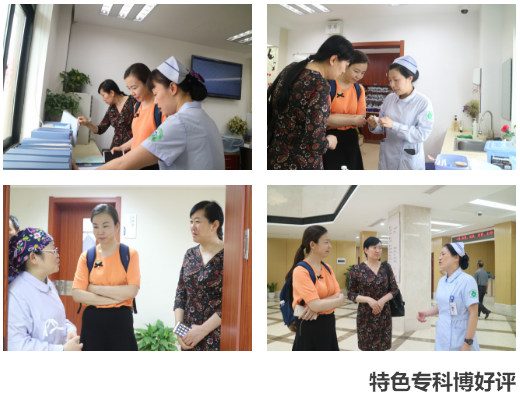 随后,宁夏专家在科室负责人的陪同下前往癌痛规范化示范病房906病区、全国营养示范病房905病区、静脉置管中心、特色专科护理门诊进行实地参观。也在参观过程中对癌痛规范化管理、信息化建设、中医肿瘤护理、专科护理门诊开诊有了更为直观的经验获取。参观过程中两位专家也十分感慨于我院护理发展的欣欣向荣之态以及院领导和相关部门对护理工作的极大支持。一天行程下来,护理专家们表示收获颇丰。