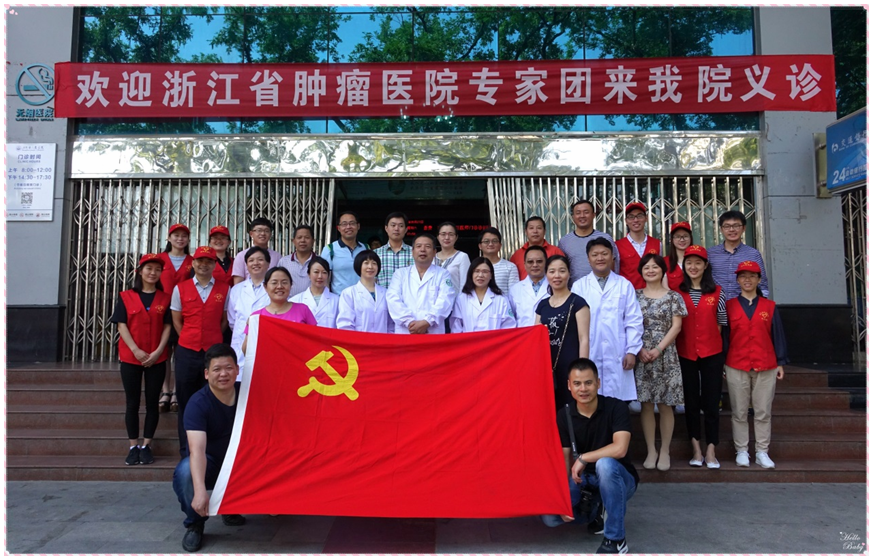 为加大医院品牌形象宣传,切实做好我院跨省异地联网结算工作,并回馈上饶市人民群众对我院的信任和支持,帮助他们更科学地防癌治癌,促进他们的身体健康。2017年5月27日,浙江省肿瘤医院行政一、行政二及外科四支部党员行程近400公里赶赴上饶,开展了“关爱健康、守护生命、服务赣北” 的联合义诊活动。
