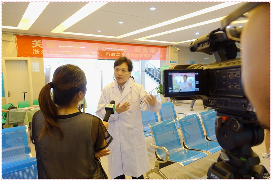 最后,杨红健主任代表我院专家团队接受了上饶广播电视台的采访,他明确了本次活动的意义,并为乳腺癌的防治提出了建设性意见。义诊活动持续了3个小时,现场共接待就诊民众100余人次,免费发放肿瘤防治手册和医保政策宣传资料400余份。