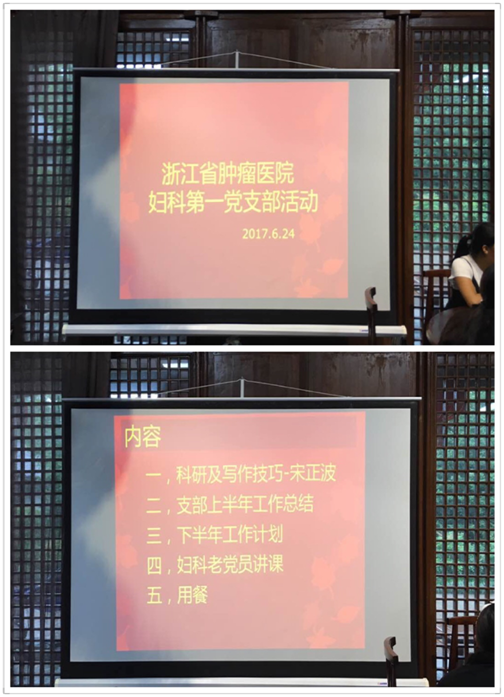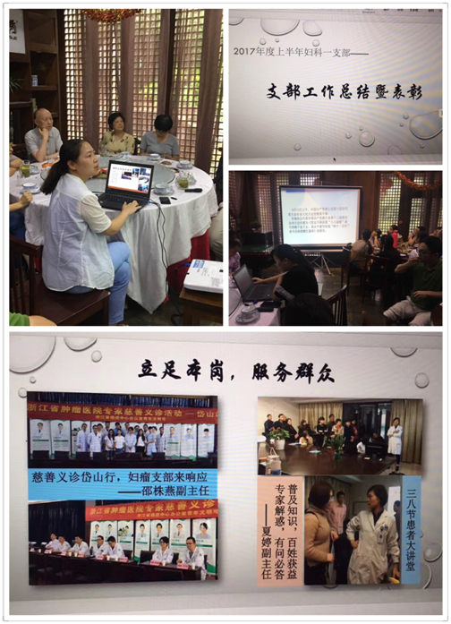 第二部分是支部上半年工作总结,大家积极去义诊、下社区、下乡,起到很好的党员带头模范作用!这里不得不提那就是我们的于爱军主任,此次浙江省肿瘤医院台州院区的成立需要一名妇科资深专家时,于主任主动报名!期间王文组织大家一起学习浙江省第十四次党员代表大会的会议精神!坚定不移地沿着“八八战略”指引的路子走下去!其中“六个浙江”即努力建设富强浙江、法治浙江、文化浙江、平安浙江、美丽浙江、清廉浙江;我们都能为此贡献一份小小的力量!