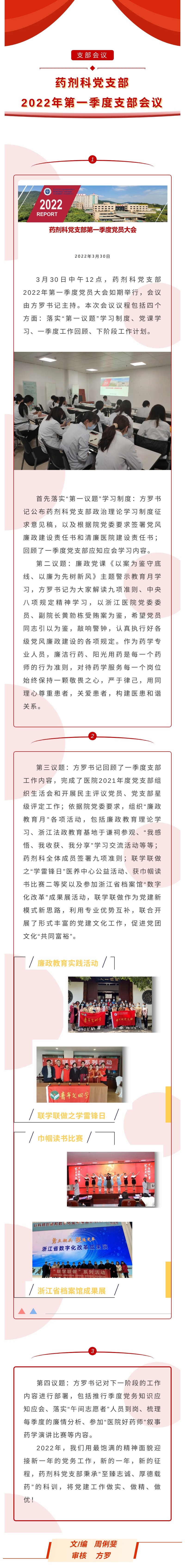 【支部建设】药剂科党支部召开2022年第一季度支部会议