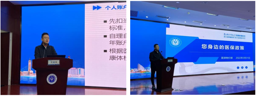 2022 年 3 月 31 日,门诊部在国际报告厅举行了第一期门诊大讲堂,邀请了医保物价部林振威老师给门诊部全体工作人员讲授主题为《您身边的医保知识》的专题课程。