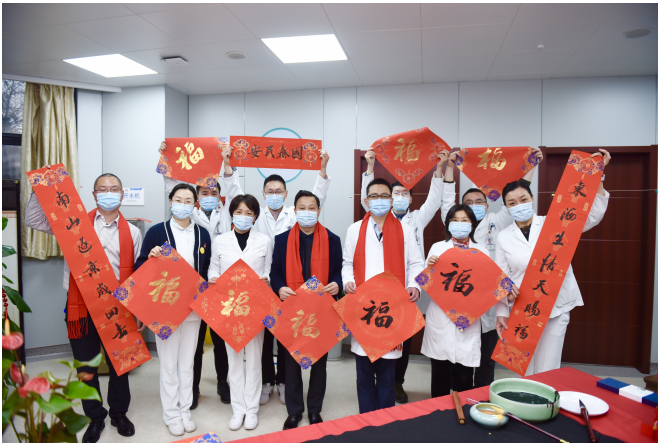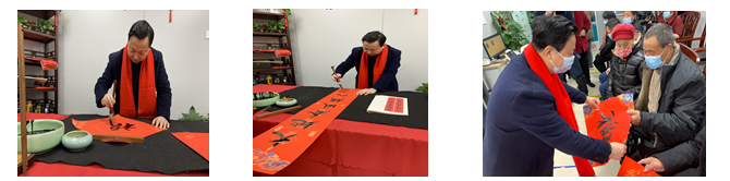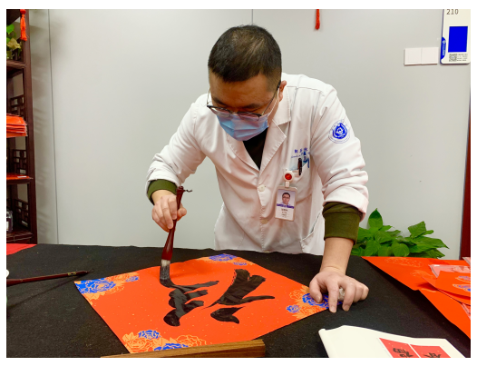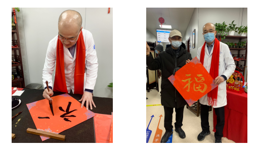 朱滔副院长忙里抽空,也来参加我们的活动。只见朱副院长起笔潇洒,运笔有度,之后还亲自赠送给患者,送去新春的祝福。