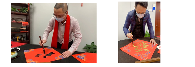 我们中医科荣幸地邀请到了朱真伟纪委书记,给我们的“迎春送福”活动开启了浓墨重彩的第一笔。朱书记执笔染墨,落笔有力,如行云流水一般,一气呵成,顷刻间就完成了一幅幅作品。刚劲有力的“福”字,寓意深刻的春联,刚刚写完墨宝还未干透就被人抢着拿去收藏了。