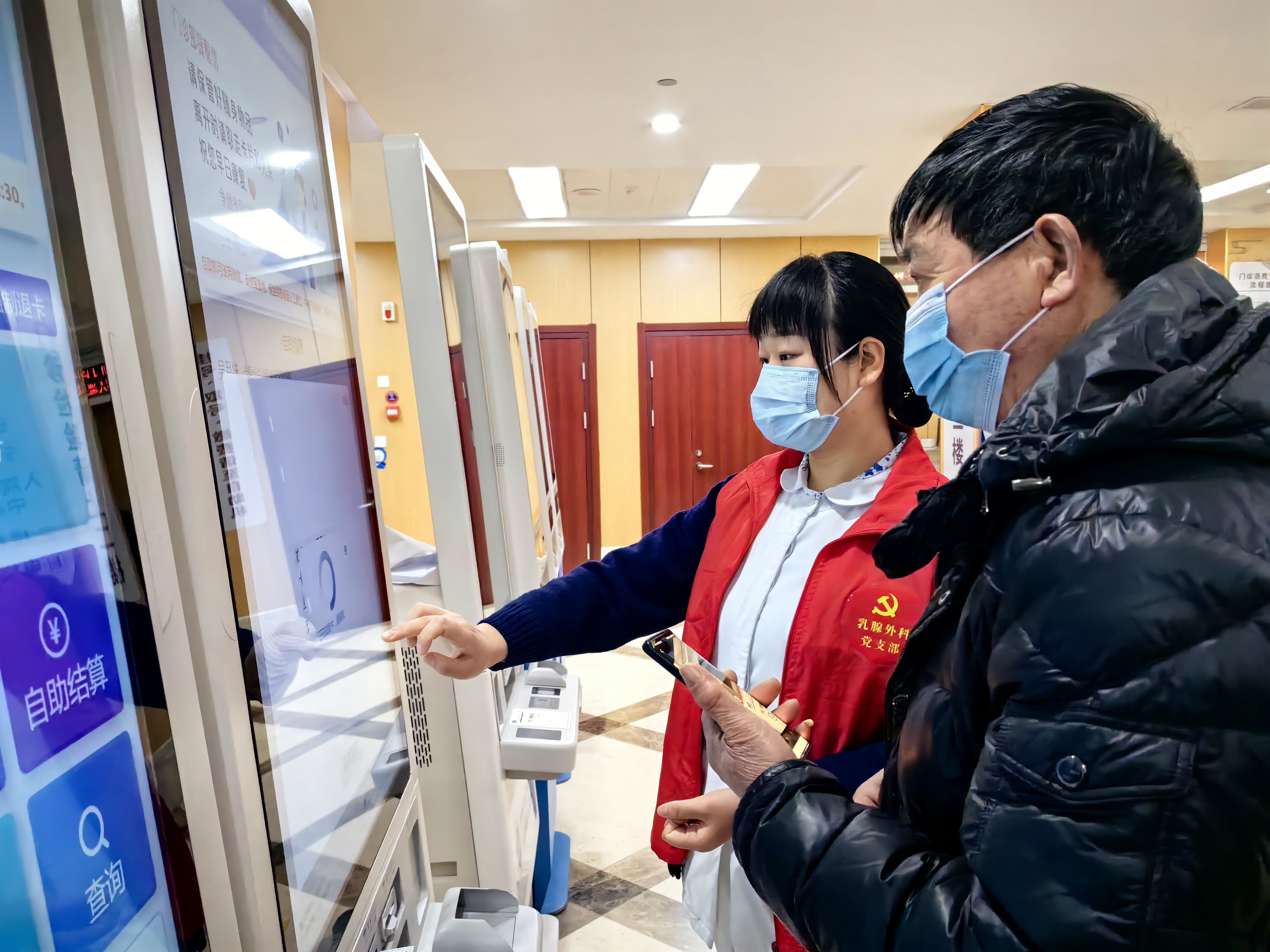 3月4~8日,每日7:00-7:30,我号青年身着红色志愿者背心,在门诊一楼自助机旁,为患者和家属答疑解惑、协助挂号。