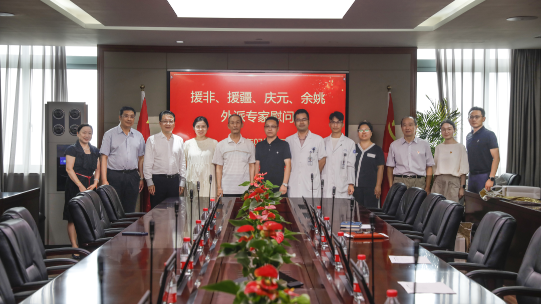 “感谢你们的辛勤付出,通过帮扶引带为基层地区、边远地区乃至国外地区带去了我院优质的医疗卫生服务,造福一方百姓,积极发挥出了我院辐射引领作用,我为你们感到骄傲!”党委书记、工会主席程向东,党委副书记、副院长金戈,党委副书记、纪委书记叶国平带领职能科室负责人向援非、援疆、庆元、余姚外派专家表示慰问,感谢他们付出的同时,与外派专家亲切交流外派期间的经历体会、询问工作生活中有无困难,表示医院永远是大家的坚强保障。