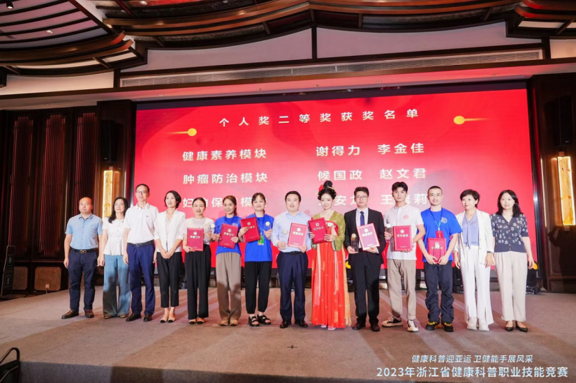 8月18日至8月20日,经过三天的激烈角逐,由省委省政府健康浙江建设领导小组办公室、浙江省卫生健康委员会、浙江省总工会、中共浙江省委直属机关工作委员会、浙江省科学技术协会主办的2023年浙江省健康科普职业技能竞赛落下帷幕。 本次竞赛在全省掀起了科普比武的热潮,经过市、县两级和省级医疗卫生单位层层选拔,最终16支代表队、69名参赛选手参加省级决赛。在高手林云的竞赛中,我院荣获个人赛二等奖2名、优胜奖2名,团队赛三等奖及优秀组织奖,接受了浙江省健康科普专家库成员聘书。