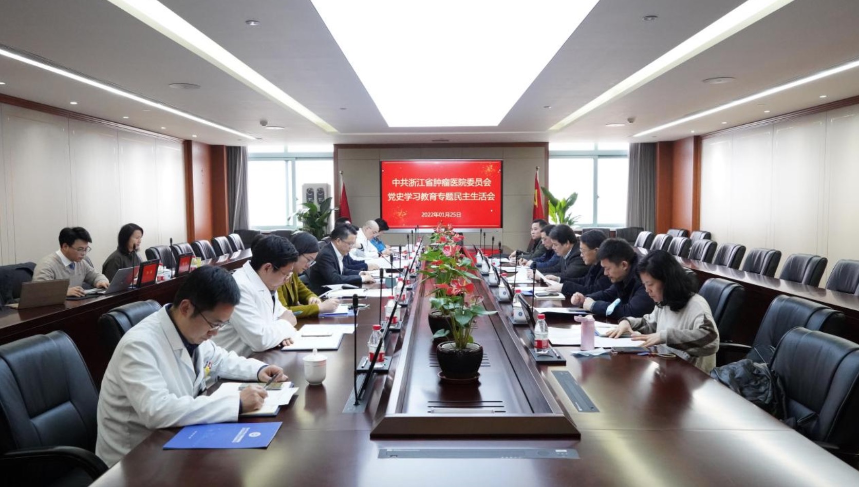1月25日上午,中共浙江省肿瘤医院委员会召开党史学习教育专题民主生活会,大力弘扬伟大建党精神,坚持和发展党的百年奋斗历史经验,坚定历史自信,践行时代使命,厚植为民情怀,勇于担当作为,团结带领全院职工走好新的赶考之路。