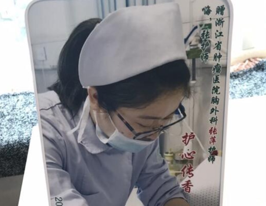 上周五,一个寻常的夏日的傍晚,浙江省肿瘤医院胸外科护士张萍像往常一样在下班前巡视病房。当她来到12床前时,张萍发现前几日肺癌术后的曲大伯已经出院了,被褥叠得四四方方,雪白的床单上摆着一幅精致的水晶桌摆,上书一行簪花小楷:赠予张护师,护心传香。