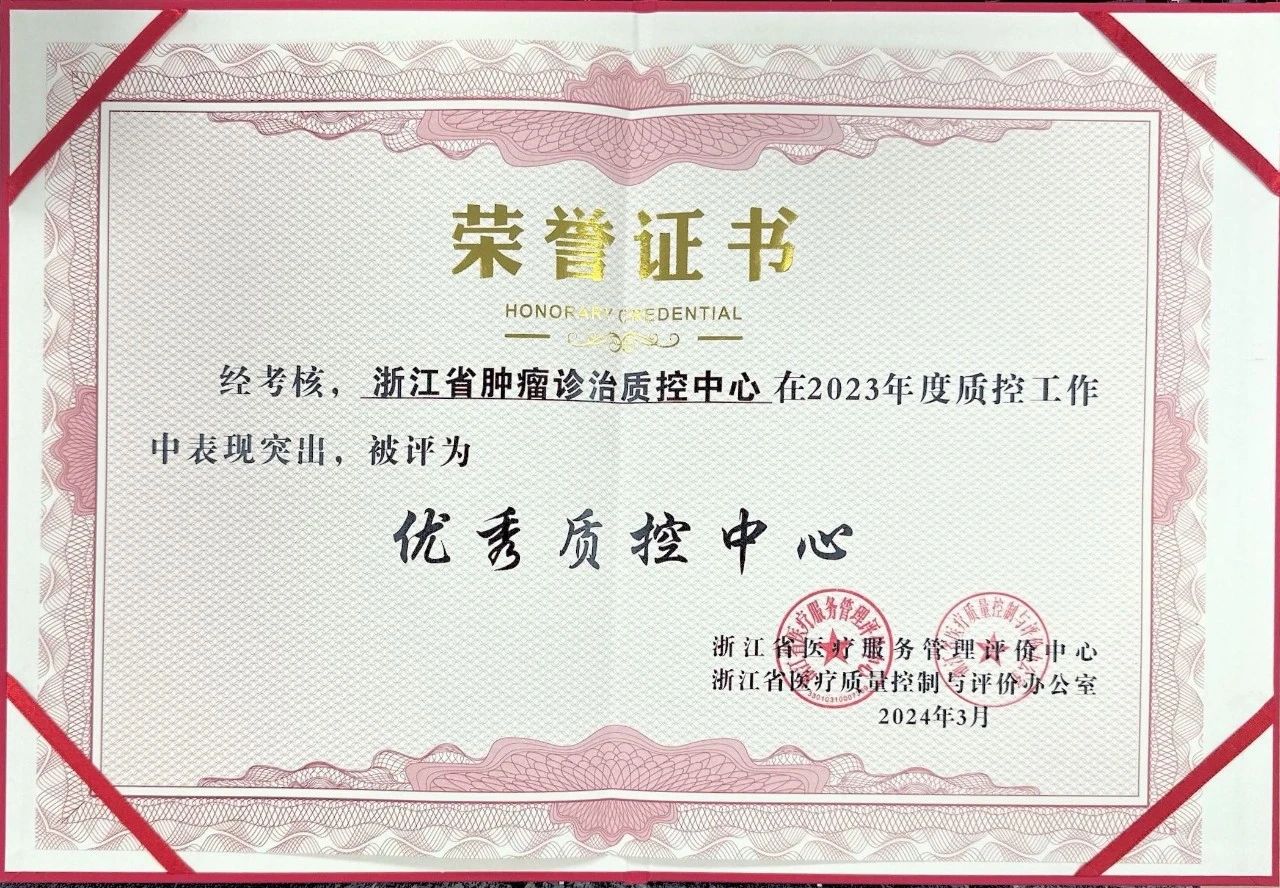 3月26至27日,2024年浙江省医疗质控工作会议暨省级质控中心及技术指导中心评比会在杭州召开。浙江省肿瘤诊治质控中心从全省39家省级中心中脱颖而出,被评为“浙江省优秀省级质控中心”。这也是本中心连续三年获此殊荣。