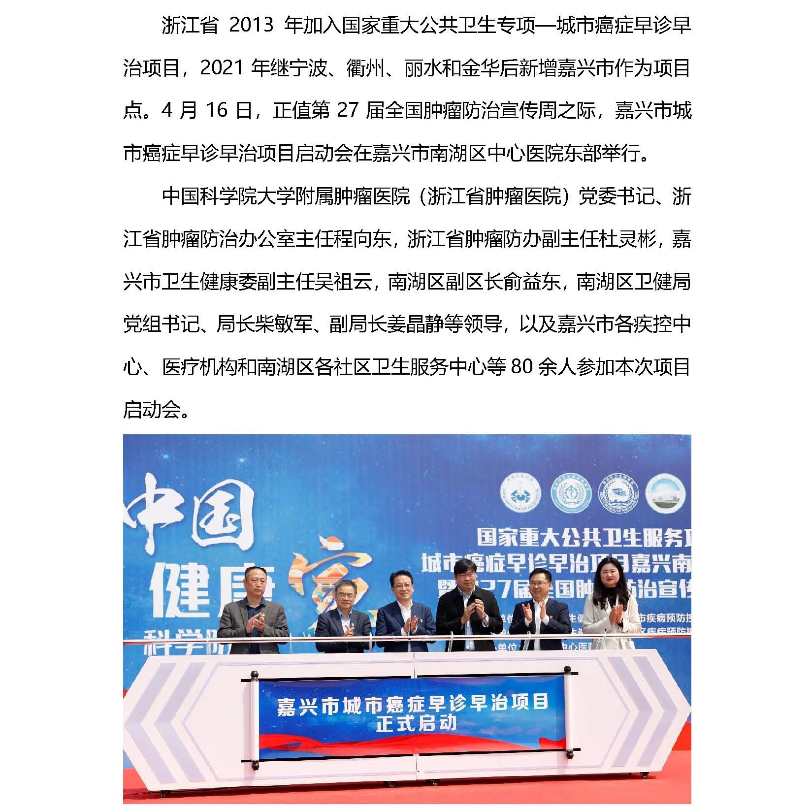 浙江省城市癌症早诊治项目再添一城 —— 嘉兴 !