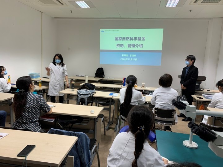 为了提高科室整体科研水平,拓宽科研思路,提高基金申请中标率,病理科启动了“专家请进来——国自然基金申请辅导”系列科研讲座活动。活动第一讲从科研部副主任李清林博士开始,他分别从科研管理者和研究者专业角度介绍了国家自然基金的战略定位、2020年科学基金改革新举措、项目申请类型、四类科学问题属性的分类评审、项目评审过程、申报技巧及病理学科申报方向介绍等。此外,他还特别强调了学术诚信的重要性。
