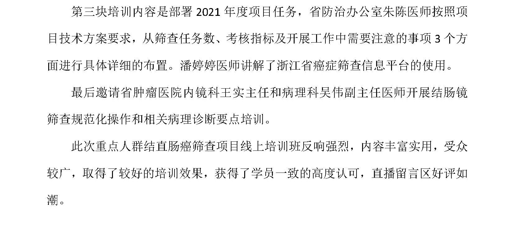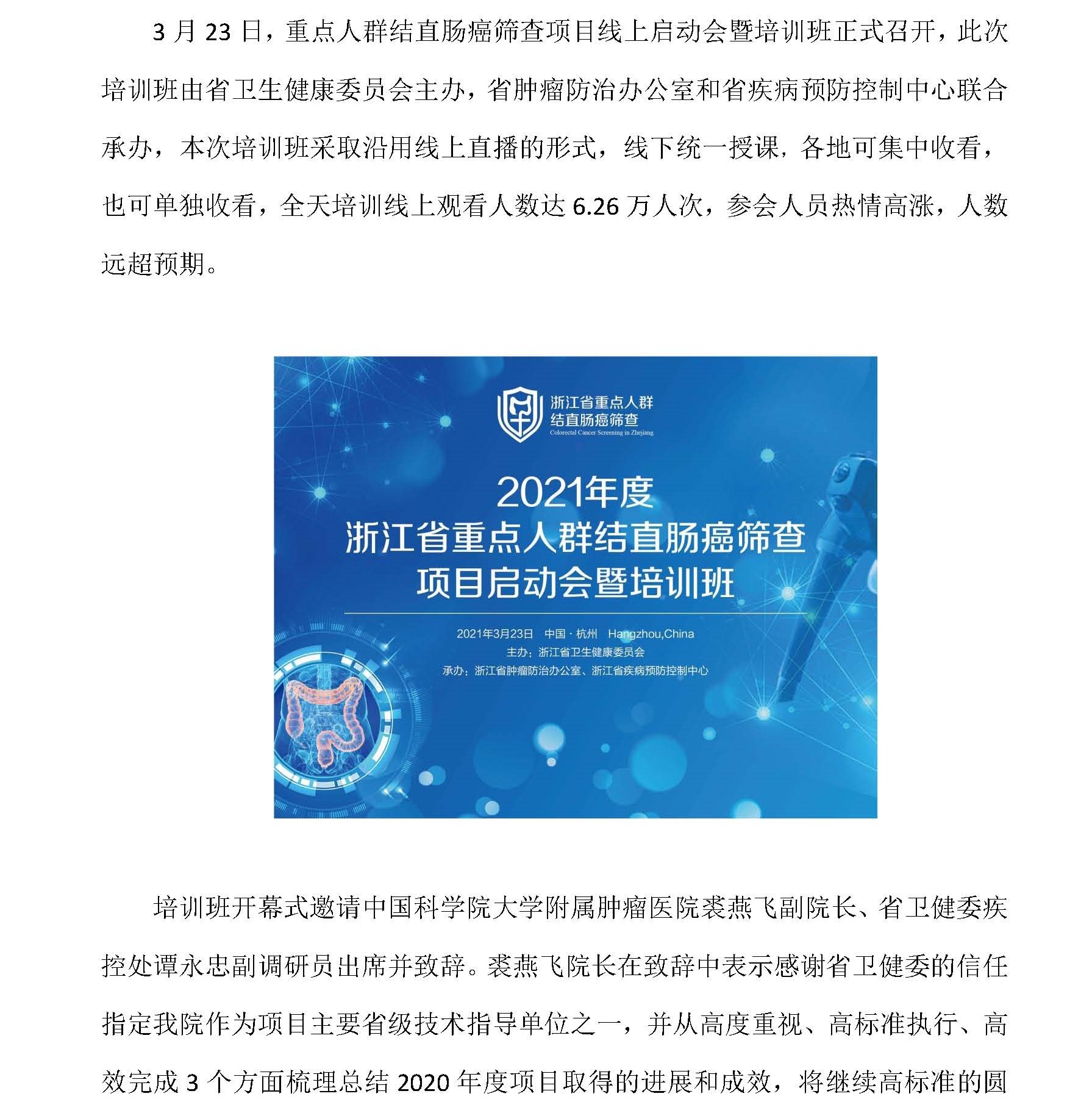 2021年浙江省重点人群结直肠癌筛查项目线上启动会暨培训班培顺利召开